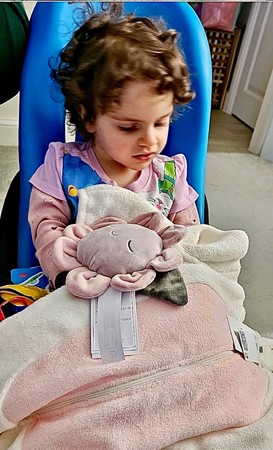 Evelyn aged 2½ has a rare genetic mutation causing seizures and global development delay amongst other serious health challenges. She in non-verbal and cannot sit, stand or crawl. Evelyn needed a Special Tomato Soft Touch Sitter to promote an upright, seated posture with comfort and upper body support to give the basic support she needs to sit, feed and play. We had no hesitation in providing this essential item to enable Evelyn to enjoy as normal a life as possible.