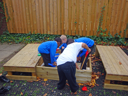 Lifeline 4 Kids transformed a small strip of wasteland between the buildings and a fence into a playground oasis for these children. We provided a Fun House and a Sandpit, which converts into a stage, together with special chests to house outdoor play equipment.