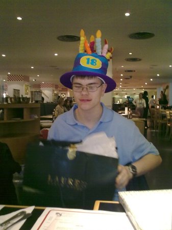 We received a most heart-warming telephone call of thanks from Joe's devoted Mum. Her appreciation was overwhelming and she began telling us all about Joe and his severe medical problems and the toll it had also been taking on her own health. During the conversation Mrs G. told us that Joe's birthday was in June and that his birthday wish was for his Mum to take him to Harrods, quote, "to buy a loaf of bread and to look at the watches and jewellery". We were so touched by Joe's case that we wrote to the then owner of Harrods, Mr Mohammed Al-Fayed and told him Joe's story and asked whether he could help in any way by providing some sort of surprise for Joe on the day. Mr Al-Fayed's office replied immediately and most generously agreed to donate a surprise birthday party for Joe and his family and guests at Harrods restaurant Mo's Diner, together with a goody bag and birthday cake for Joe.