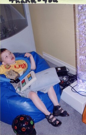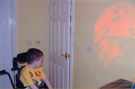 Little B....... is a delightful 5 year old boy from Devon with multiple disabilities who needs 24 hour care. He was not able to play with toys or entertain himself at all. His Mum and Dad asked us for help with a Sensory Light Package to help improve B's health, his sight and to give him a happier and better quality of life. Click on the pictures show him at play...the words of thanks say it all.