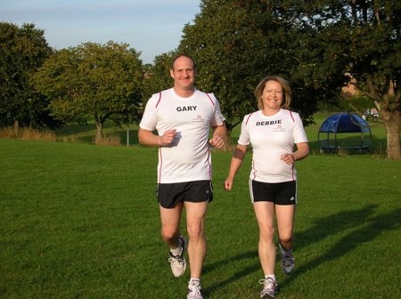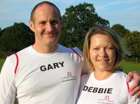 Click on the photo to see Joel in his new Walker and Debbie and Gary sporting their new Lifeline 4 Kids running shirts specially created for the Marathon. Well done and thanks to a truly inspirational couple!